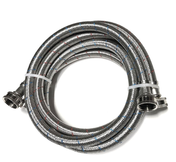• ONE PAIR of 304 stainless steel braided commercial grade premium washing machine hoses with 3/4" straight connection. 1/2" ID for high water flow. Red lined for HOT water and blue lined for COLD water. Compatible with major commercial washer brands such as Alliance, Whirlpool, Eletrolux, Spped Queen, Miele, just name a few.
